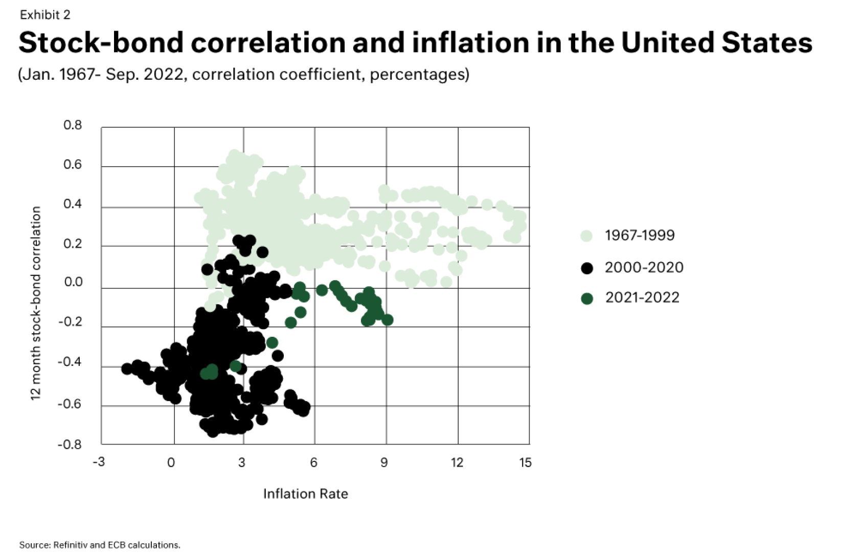 A key factor to the correlation relationship is the prevalence of inflation and inflation expectations. The period of 1967 to 1999 was marked by levels of higher inflation, whereas the period from 2000 to 2022 was a period of the ‘great (inflation) moderation’ and low and lower bond rates. In 2022, this assumption of forward-looking benign inflation and accompanying low bond rates was effectively destroyed. The resultant implications for asset allocation strategy moving forward are significant.