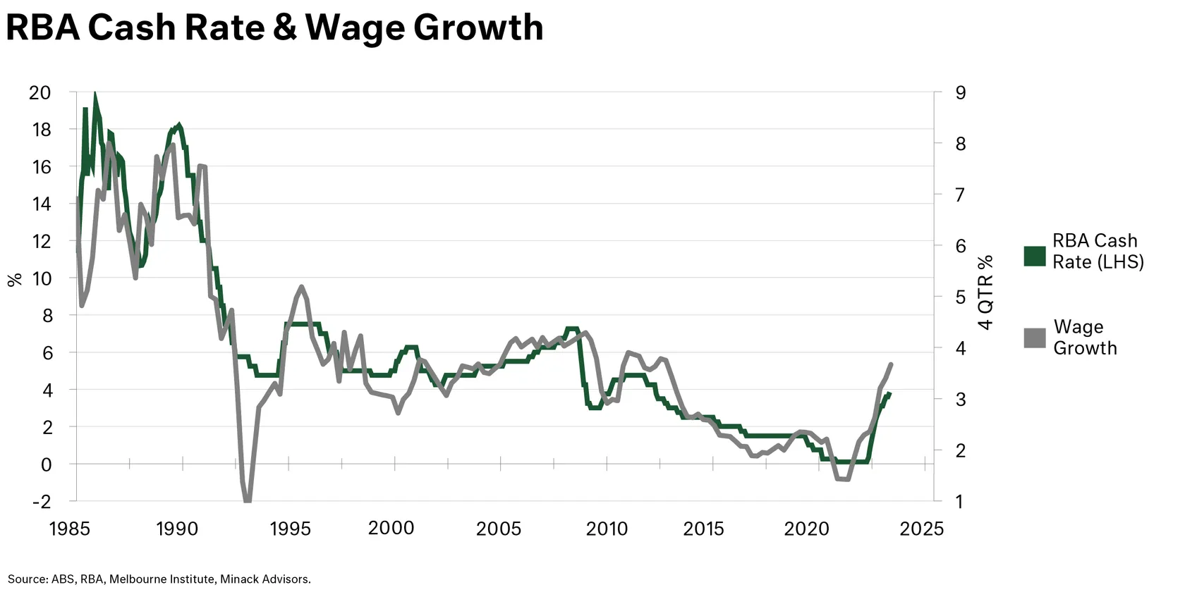 Accelerating wage growth is an upside risk for inflation. We expect the RBA will wait until an inflection in wage growth before ending this tightening cycle.