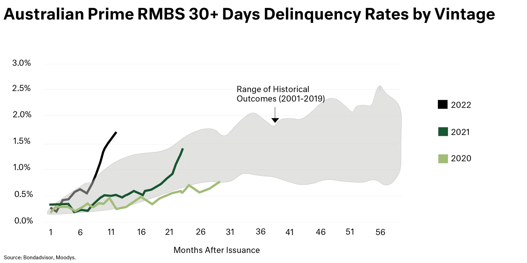 The record delinquency of the 2022 vintage after just 11-months illustrates that the impact of tighter monetary policy will not be felt evenly across households, elevating the risk of forced sales and zombie mortgages.