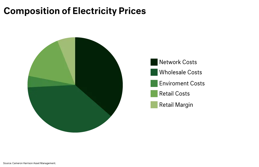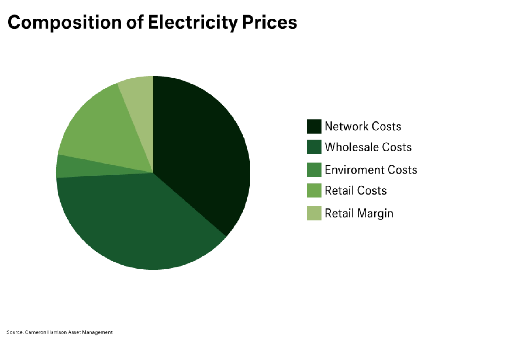 Approximately 35-40% of electricity costs are driven by production costs, with a similar amount for distribution, and the remainder, retail costs and margin. Global demand for coal and LNG is expected to remain strong, aided by restricted new supply, and this will flow through to elevated prices domestically over the medium term, whilst the cost of energy networks will only climb higher. Both costs are largely out of the hands of either party.