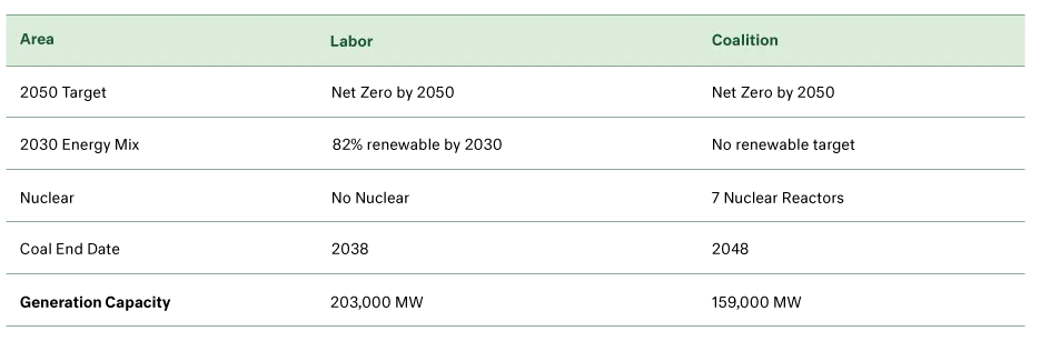 Both parties are, at this stage, committed to net zero by 2050, but will achieve this end point by different means. In simple terms, we see three main differences: