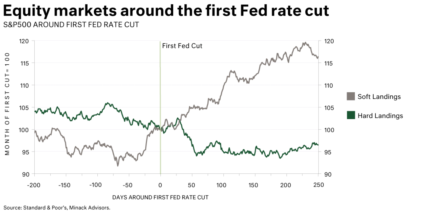 In our chart, you can see that soft landings are unequivocally positive for US equity markets, marked from the point of the Federal Reserve’s first rate cut. Conversely, economic hard landings see deep, widespread destruction in employment, consumption demand, capital stocks, earnings and earnings multiples, and is dismal for equity markets. So, this begs the dual question: