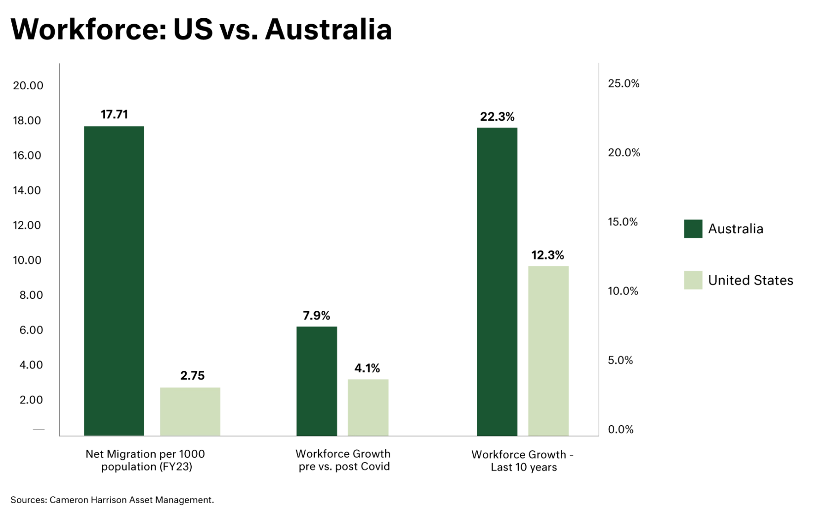 In the past 12-month the net migration into Australia has been over 450 thousand people, to put this in context, on a per capital basis the growth in the Australian population via net immigration was 6 times higher than the US.