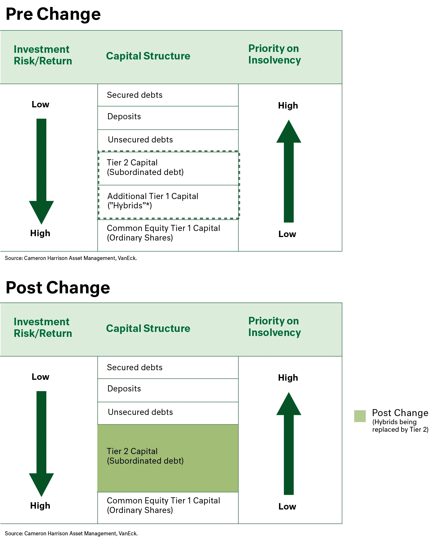 In September, APRA made a significant announcement to the Australian banking sector and the fixed income market with its proposal to remove Additional Tier 1 Capital (known as AT1 or Hybrids) from the capital structure of banks. Currently 1.5% of bank capital is required to be held as AT1, but from 2027 (over a transition period until 2032) this will be phased out. The Australia hybrid market is relatively small at $43 billion, especially when compared with Government issued bonds at are over $1.5 trillion and financial institution bonds near $600 billion. The particular ‘sweet spot’ of hybrids has been twofold – firstly, they have been ASX listed and available to retail and institutional investors, and secondly, they have carried a tax effective gross up yield through imputation credits (again, attractive to retail or private investors)