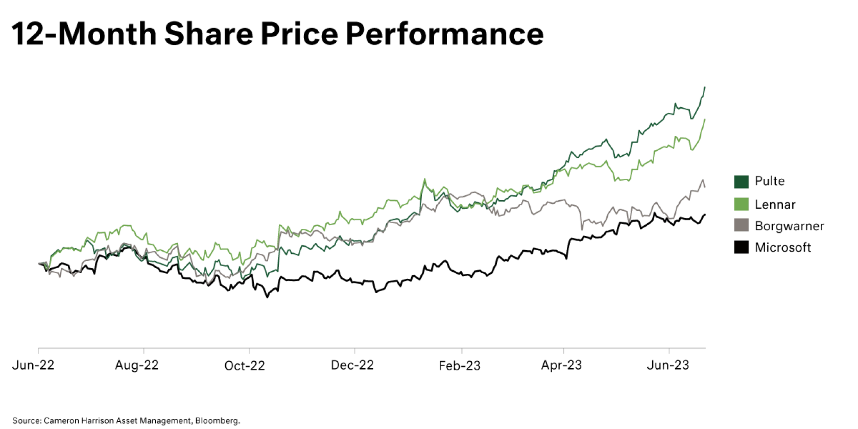 Translating this into a portfolio performance, in the 12 months to 30 June, the Cameron Harrison US Equity Strategy (AUD) produced 27.97% pre-fees. This compares to the S&P 500 (AUD) which produced 23.91% pre-fees. An excess return of 4.06%, with measurably lower portfolio risk.