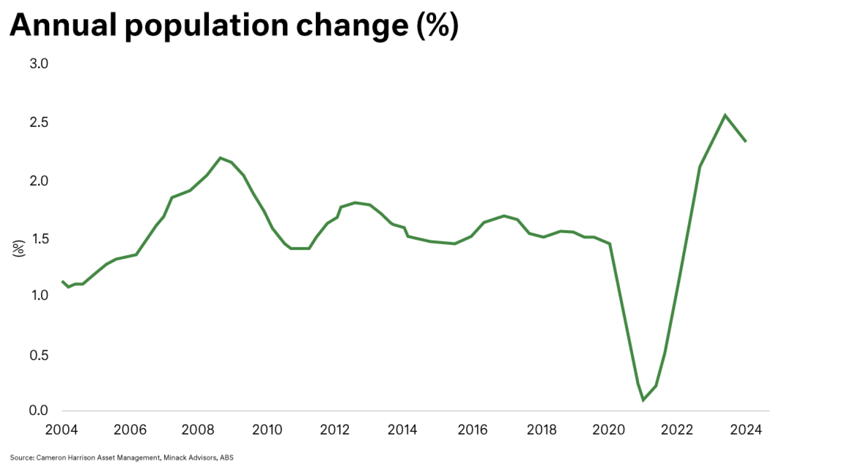The Federal Government’s aggressive immigration policy has created a stark mismatch between housing supply and demand, putting upward pressure on house prices. With record numbers of new arrivals boosting demand for housing, the market faces increasing strain as the supply side remains relatively fixed.