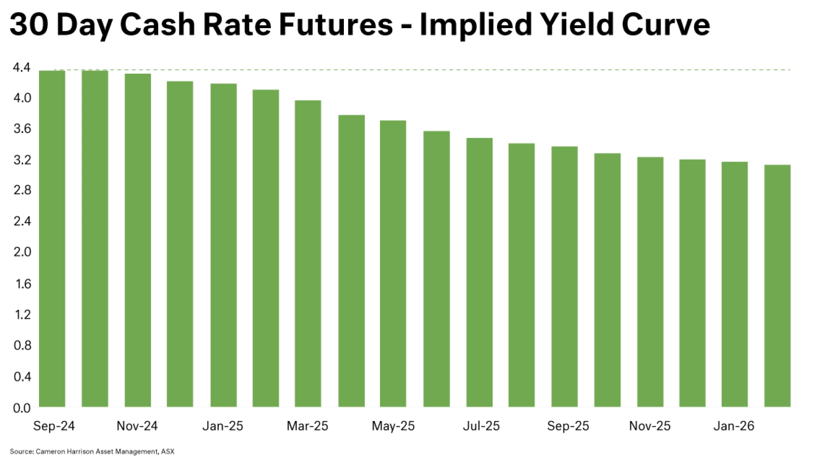 However, given market expectations (see below chart) of rate cuts in early 2025, this would act as a rising tide, buoying house prices throughout this period. The theory is that as borrowing costs recede, the allure of property purchases increases, amplifying demand and pushing valuations upward.
